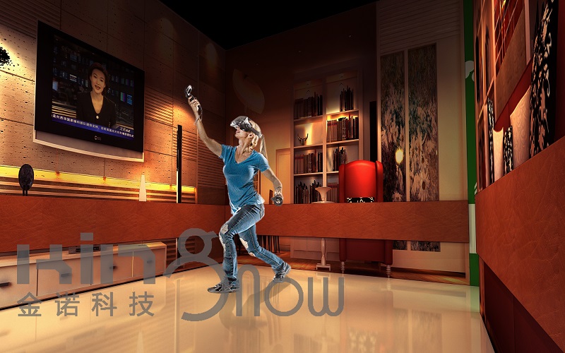 1、參與者佩戴VR眼鏡,由工作人員指引,進入體驗互動區域;